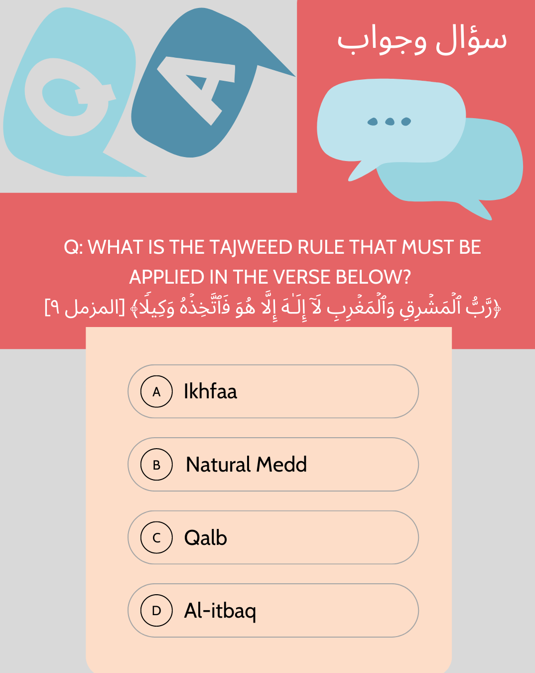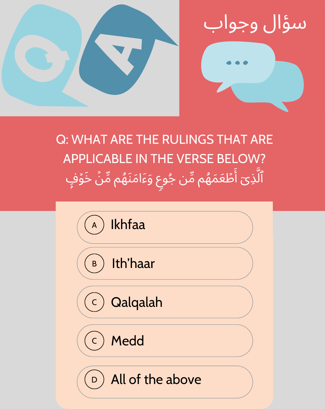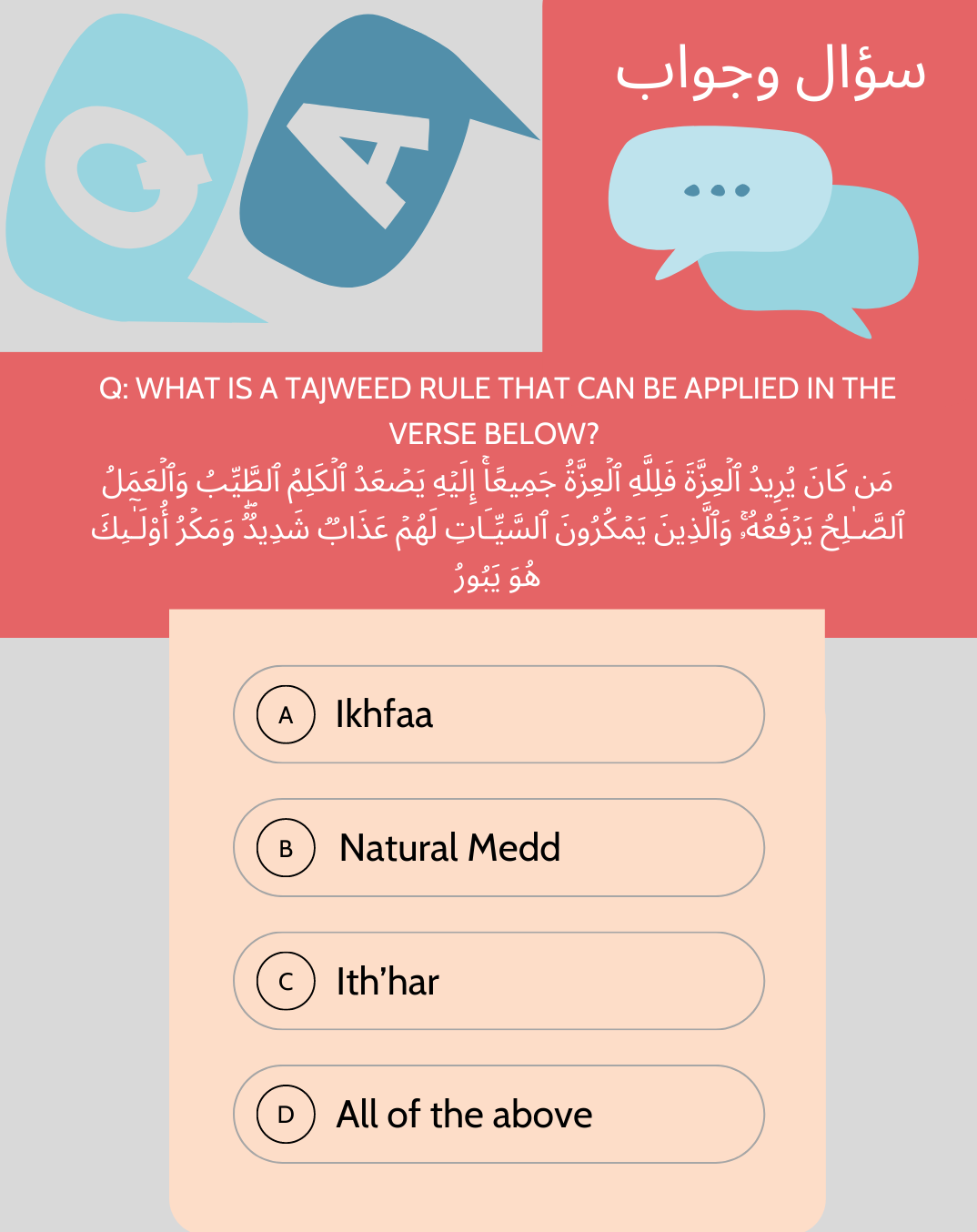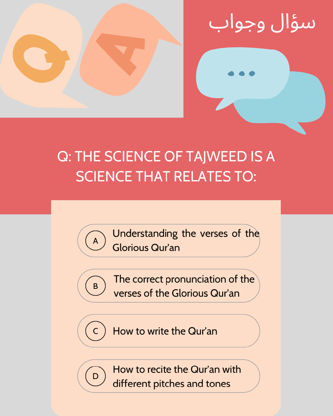 The correct pronunciation of the verses of the Glorius Qur’an.